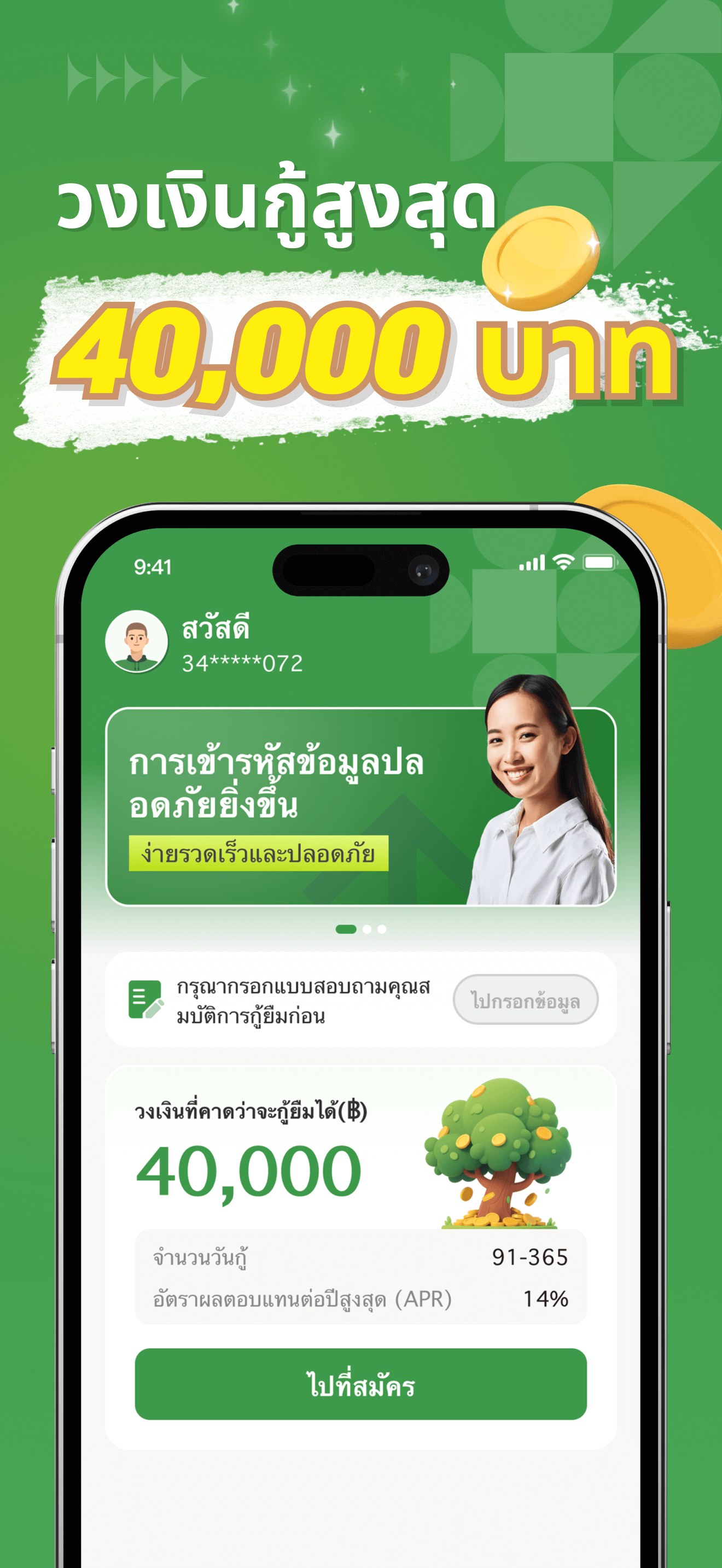 - วงเงินกู้ยืดหยุ่น: วงเงินกู้สูงสุด 40,000 บาท